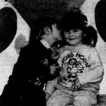 Caught during an affectionate moment at Oxford House Nursery on Grosvenor Road is four-year-old Jeremy Plested and three-year-old Stephanie Shaw getting into the spirit of things for Valentine’s Day.