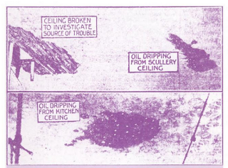About the fact that oil is dripping from the ceilings intermittently and collecting on the floors there is no room for doubt. A large firm of motor engineers inNorwich have had samples of it submitted to them. Some of it, they say, is paraffin, some of it they declare to be petrol, as good as any that they have to sell.